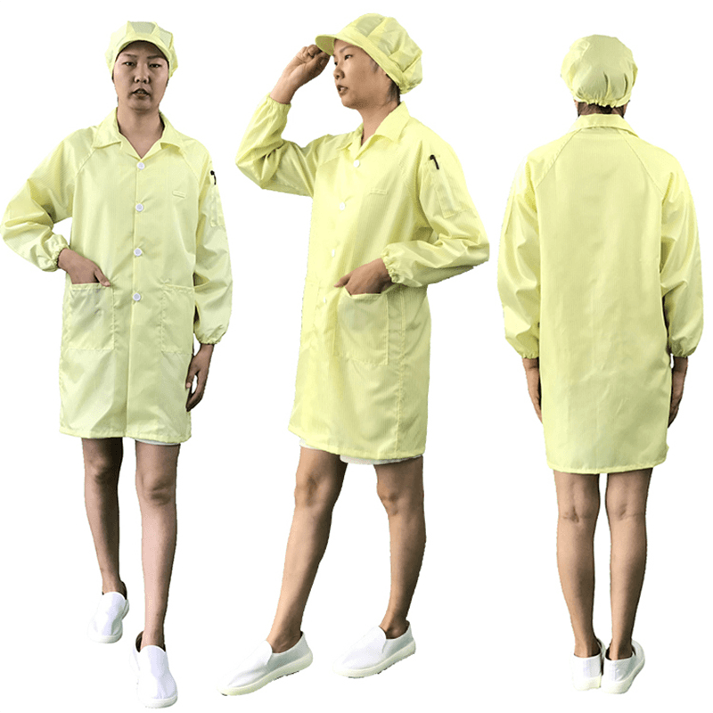 Pakaian pelindung ESD (juga dikenali sebagai pakaian pelindung makmal ESD) direka khas untuk melindungi peralatan elektronik sensitif dari pelepasan elektrostatik. Pelepasan elektrostatik (ESD) boleh menyebabkan kerosakan serius terhadap produk elektronik, menyebabkan kegagalan litar atau kegagalan peralatan. Pakaian pelindung kami menggunakan bahan -bahan yang sangat konduktif yang dapat melindungi elektrik statik secara berkesan dan memastikan keselamatan peranti elektronik semasa pengendalian. Perlindungan ini amat penting untuk makmal dan kilang produk elektronik, serta kedai pembaikan telefon bimbit yang perlu mengekalkan peralatan sensitif.