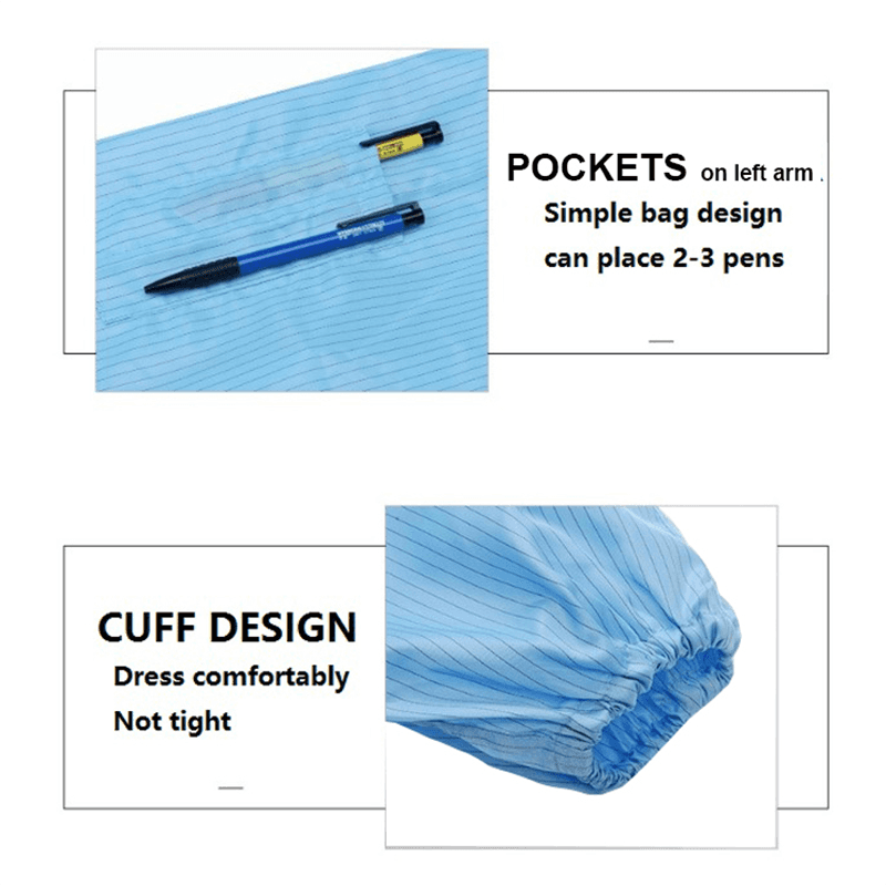 Jaket dan seluar anti statik ini datang dengan manset untuk menyediakan pengguna dengan perlindungan lengkap. Reka bentuk manset memastikan liputan penuh perisai elektrostatik, menghalang elektrik statik daripada dibebaskan dari tepi pakaian semasa operasi, terus meningkatkan kesan perlindungan.
