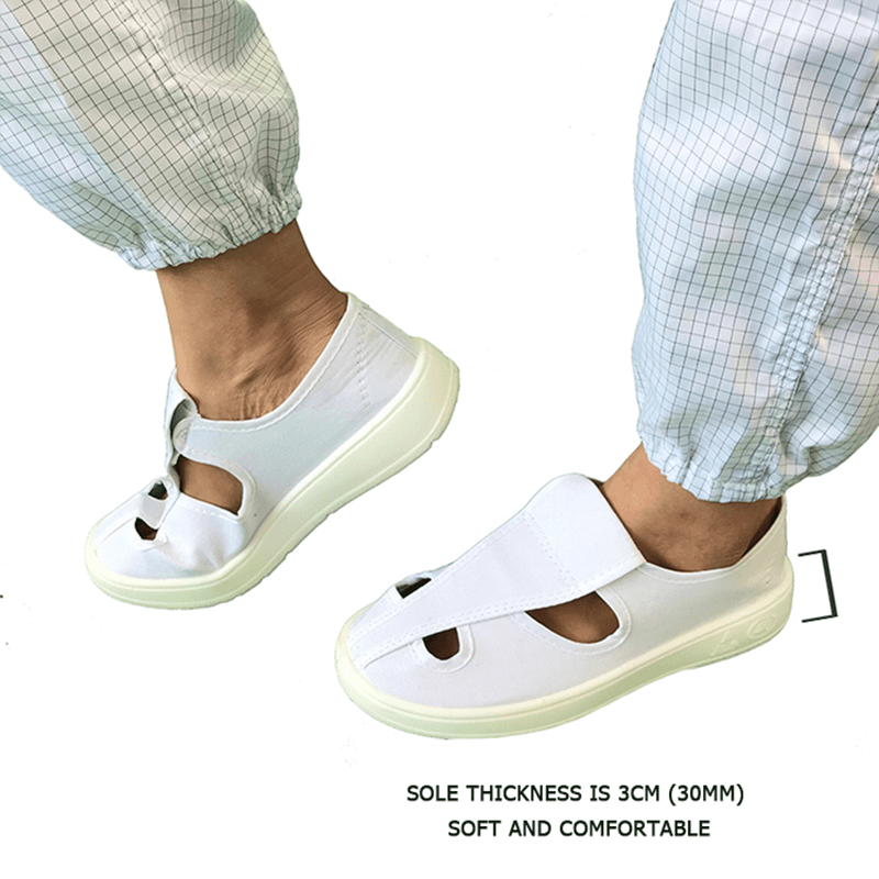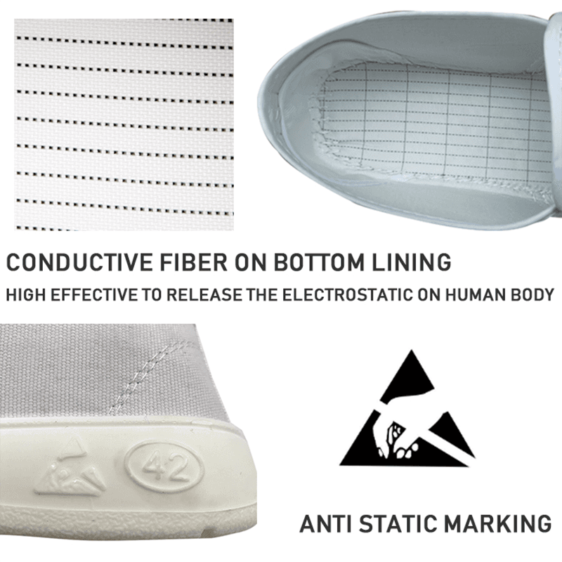 Kasut anti-statik adalah peralatan perlindungan utama untuk bengkel pengeluaran dan makmal maju dalam industri mikroelektronik seperti peralatan komunikasi dan litar bersepadu. Mereka direka untuk mengurangkan atau menghapuskan bahaya elektrik statik dengan selamat menyalurkan elektrik statik yang dihasilkan oleh tubuh manusia ke tanah melalui bahan konduktif di tapak kaki. Ini secara berkesan dapat menghalang elektrik statik daripada merosakkan peralatan dan produk elektronik yang sensitif, dan melindungi kestabilan persekitaran pengeluaran dan kualiti produk.