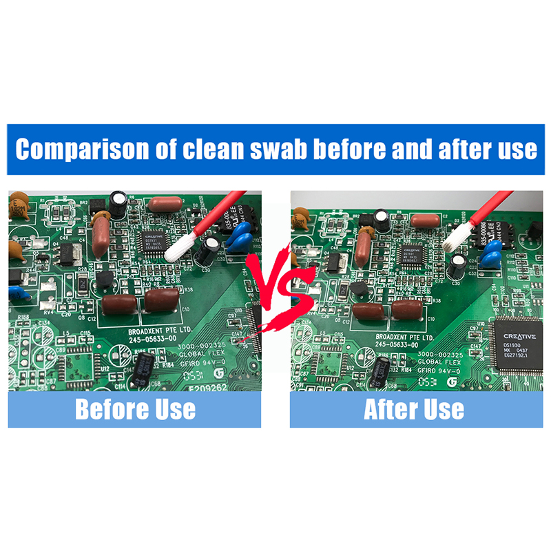 Kapas kapas poliester yang rajutan mempunyai rintangan pelarut yang sangat baik dan dapat mengekalkan kestabilan dalam pelbagai persekitaran kimia yang keras. Ini menjadikannya sesuai untuk tugas -tugas seperti mengeluarkan sisa pita, minyak pelincir yang berlebihan di papan PCB, dan senjata pembersihan. Sama ada ia digunakan untuk menghilangkan zarah kecil atau mengendalikan peralatan ketepatan tinggi, swab kapas poliester rajutan dengan mudah boleh melakukan kerja.
