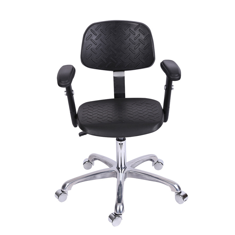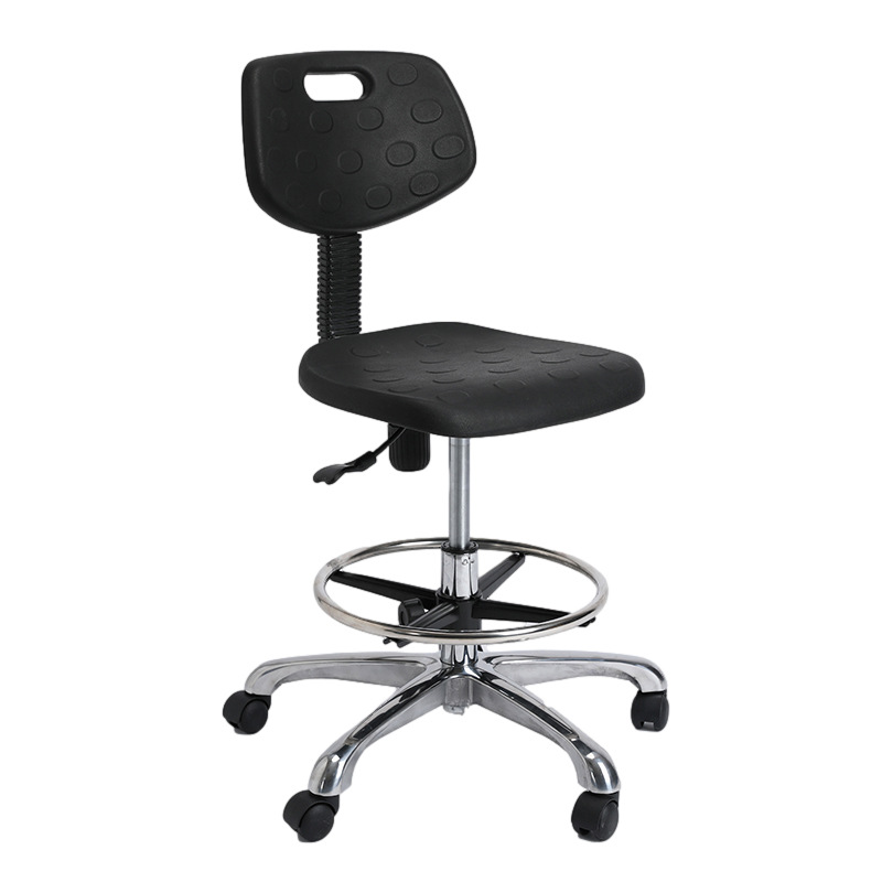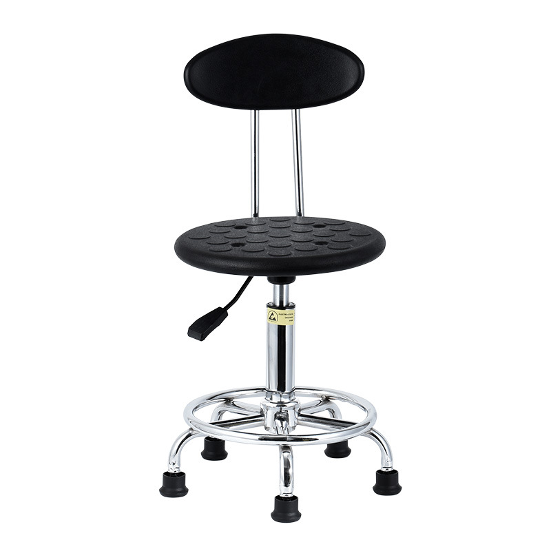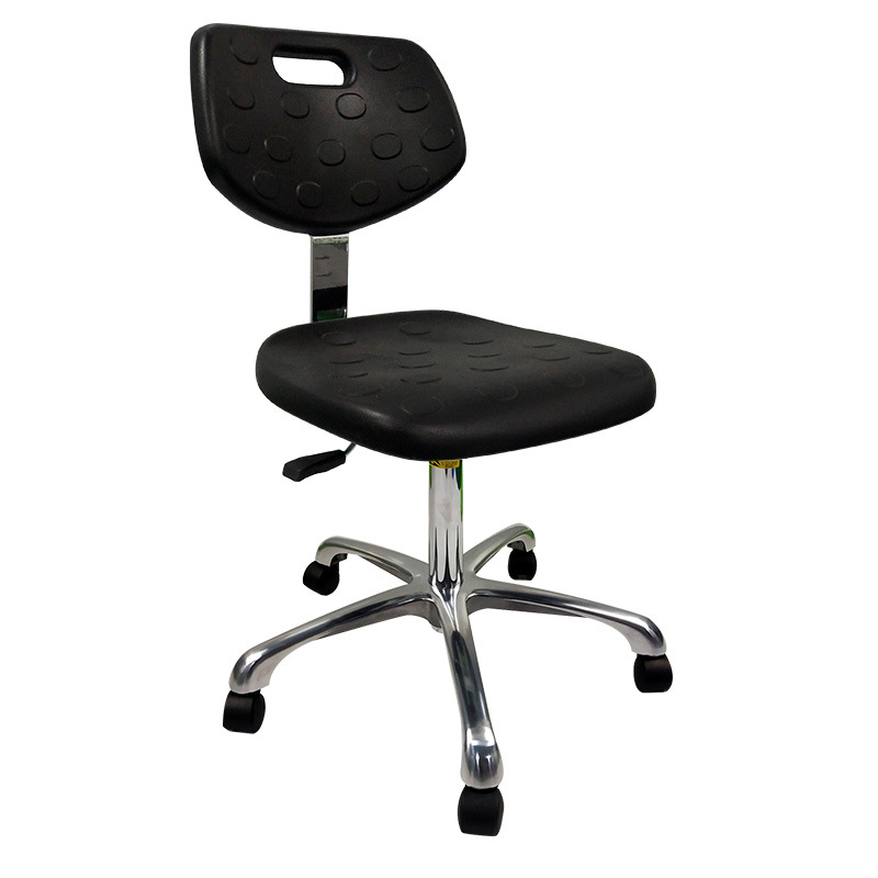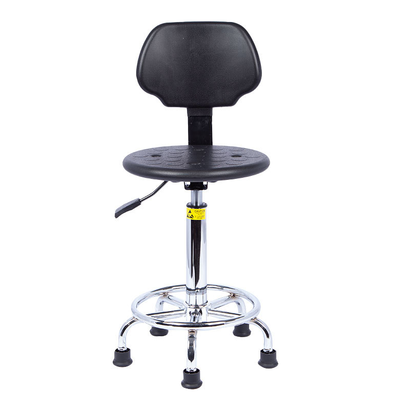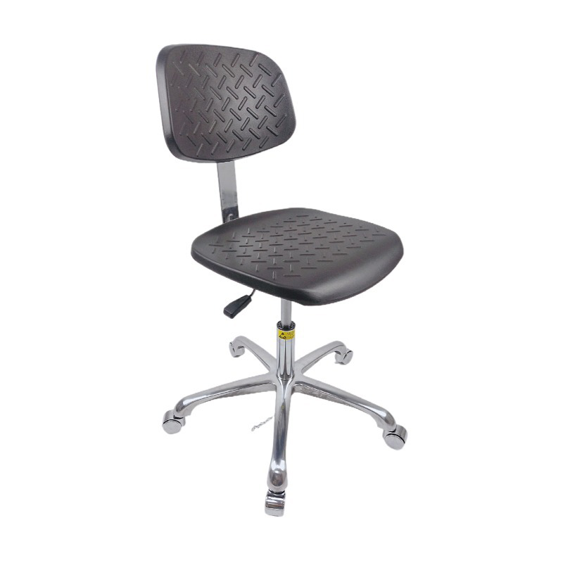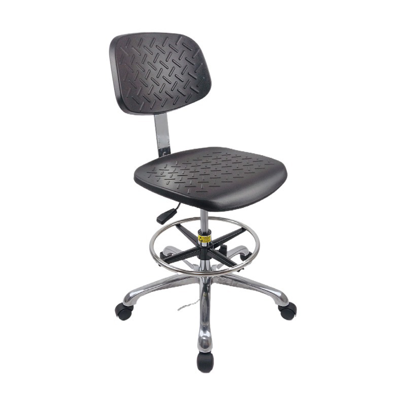 Kerusi anti statik adalah peralatan penting di kawasan sensitif statik dan digunakan secara meluas dalam industri seperti pembuatan elektronik, semikonduktor, farmaseutikal, dan instrumen ketepatan. Kerusi anti statik kami diperbuat daripada bahan pencetakan suntikan PP yang berkualiti tinggi, digabungkan dengan kulit PU/PVC anti-statik dan buih PU, memastikan kekuatan tinggi, kekerasan yang tinggi, dan rintangan haus yang unggul dan rintangan kakisan. Nilai rintangan permukaan bahan di permukaan kerusi adalah antara 10^6 dan 10^11 ohms, yang secara berkesan dapat mencegah pengumpulan dan pembebasan elektrik statik.