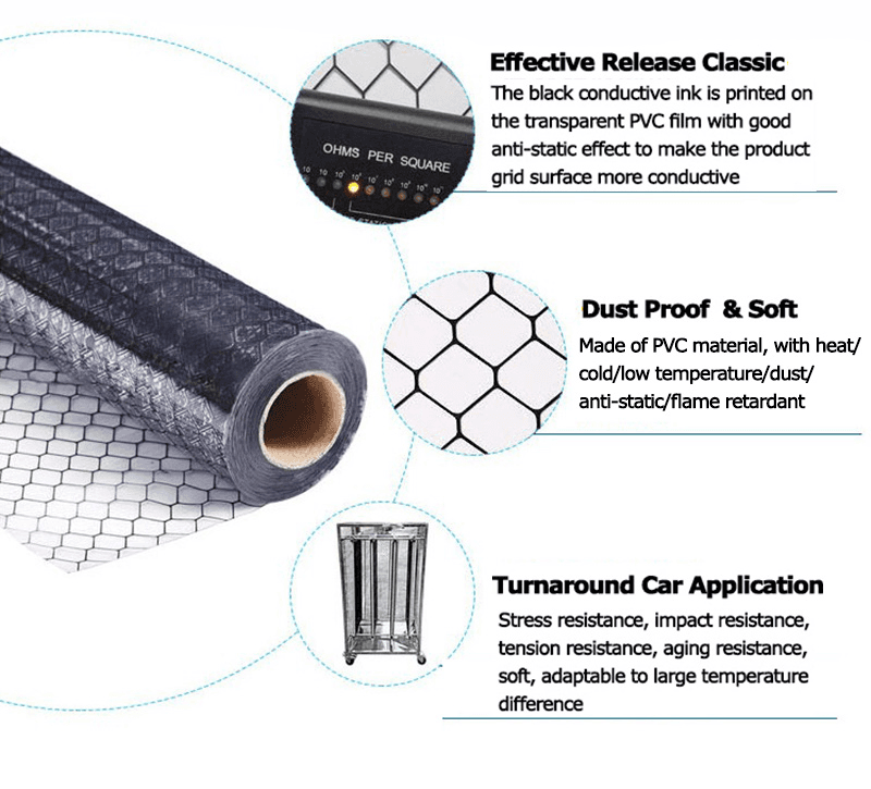 - Prestasi Konduktif: Dakwat konduktif hitam dicetak pada filem PVC untuk membentuk struktur grid, yang memastikan prestasi konduktif yang sangat baik.